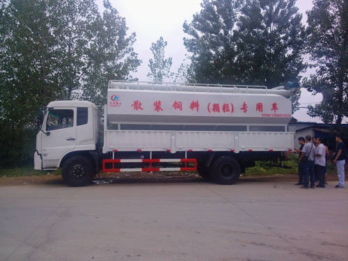 昨日,來自河南的三名客戶在我公司舉行了簡短的驗車儀式,非常滿意的提走了一個星期前在我廠定購的二臺東風天錦貨廂式散裝飼料運輸車。