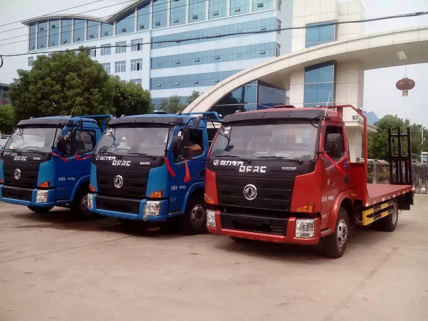 此次客戶訂購的東風勁卡平板運輸車是唯一二款可以上藍牌的平板運輸車中的一種(另一種為王牌平板運輸車),該車總長5950mm,有效板長3640寬2360,可運載80型鉤機和聯合收割機,上藍牌,C照可以駕駛。