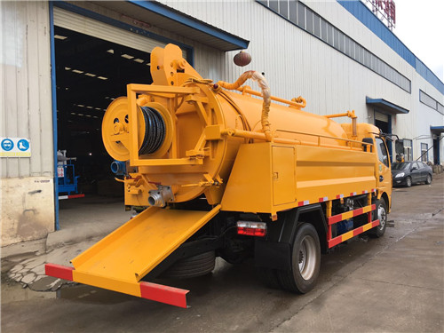東風(fēng)多利卡5方國五清洗吸污車專用部分由取力器、傳動(dòng)軸、真空吸污泵、壓力罐體、液壓部分,管網(wǎng)系統(tǒng)、真空壓力表、視糞窗、洗手裝置等組成,隨車配置大功率真空吸污泵和優(yōu)質(zhì)液壓系統(tǒng),罐體封頭一次壓鑄成型、罐體可后開、雙頂自卸。罐內(nèi)污物可通過后蓋直接傾倒,具有真空度高(比吸糞車的吸力更大)、噸位大、效率高、用途更廣泛的特點(diǎn)。