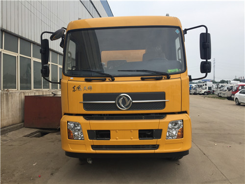 (4)底盤配置:原裝東風高端底盤,軸距4.7米,新款天錦帶臥鋪駕駛室,康明斯6缸180馬力發動機,電控噴頭,高壓共軌,東風6檔變速箱,4.5噸前橋,9噸后橋,帶方向助力,離合助力,帶冷暖空調,帶原裝ABS,帶北斗定位的行車記錄儀。