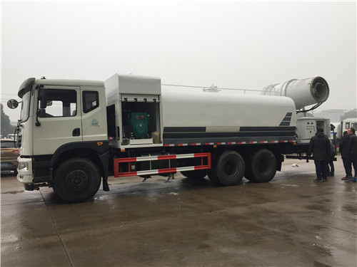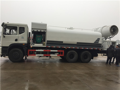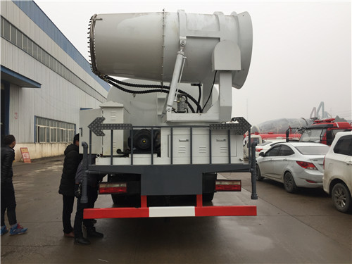 多功能抑塵車又稱為:霧炮車、噴藥車。霧炮車噴射的水霧顆粒達到微米級,能有效分解空氣中的污染顆粒物、塵埃等,在霧霾天氣下用于降塵除霧,可以有效的緩解霧霾,其節水的特性同樣也可以用作灑水車使用。霧炮車還可以降塵、灑水,把樹上的灰塵洗掉。霧炮車噴灑出的水霧與懸浮在空氣中的PM2.5和PM10粉塵顆粒吸附、聚合、沉降,達到消除污染物和減霾的目的。盡管霧炮口徑巨大,但其噴灑耗水量僅為傳統灑水車的兩到三成,覆蓋面積和除塵效率卻高出20倍。既提高效率,也避免路面積水影響交通。