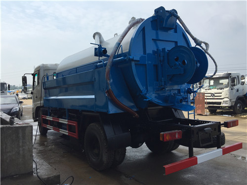 高壓清洗吸污車關鍵元件是真空泵,利用真空泵工作產生的壓力差進行抽污。安裝進口防溢流裝置,防止糞便、污水因吸滿倒灌至真空泵系統。