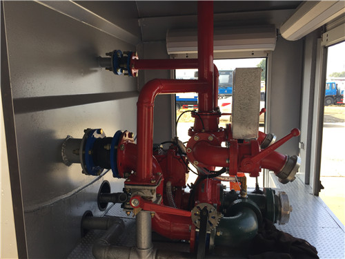 消防灑水車可根據底盤選配相應的消防泵。如:東風福瑞卡及多利卡消防灑水車一般配BS20消防泵,夾心取力器、閘閥、SP20消防水炮,射程可達40米;其它大型消防灑水車可配BS30消防泵,SP30水炮,射程可達45-50米;可選裝BS40消防泵,射程50-55米;選裝SB60泵,射程55-60米。消防泵的選擇要根據發動機馬力來決定,切記不可“小馬拉大車”。