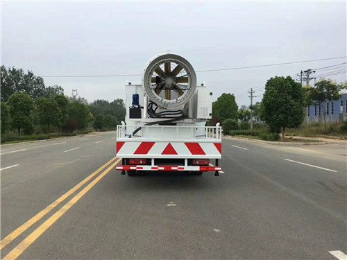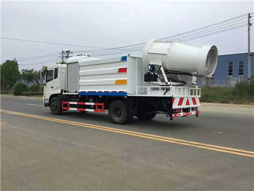 我廠生產的抑塵車根據罐體容積不同,采用4-6mm厚武鋼Q235碳鋼板制作,罐體內置防浪板,避免車輛急剎時液體前涌造成的安全隱患,罐體頂部開有人孔。人孔既可以作為工作人員進行罐內檢修的進出口,也可以作為加水孔用于向罐內加注水;隨車配備大功率專用灑水泵(標配隨州億豐灑水車,選配杭州威龍灑水泵),比同類灑水泵壓力大、吸程遠、使用壽命長,克服其他灑水泵易被雜物纏住、壓力小、吸水慢的缺點。整車帶前沖(噴)、后灑、側噴、罐體后部帶工作臺,平臺上安裝綠化高壓灑水炮。灑水炮可全方位旋轉,可連續調成直沖狀、開花狀、大雨、小雨、毛毛雨、半霧狀水流,以適合不同狀況下的需求。