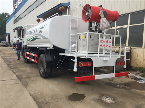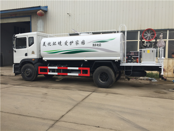 灑水車標準配置和選裝配置,有前沖、后灑、綠化澆灌、遠程水炮等裝置。采用輕質的鋁合金材料,并設置有多重安全防護裝置與報警系統。灑水車罐體采用4毫米Q235碳鋼一次鑄造成型,罐體容積12立方。