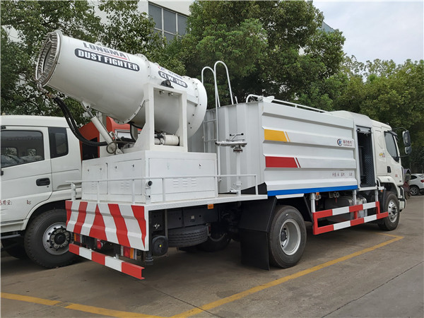 柳汽乘龍多功能霧炮車是由動力系統、儲水罐、抑塵系統、低壓水路系統、液壓系統以及電氣系統組成,整機外觀沉穩端莊、結構緊湊。為了保證高效的施工作業,該機配備兩套動力來源,下裝發動機,為車輛行駛提供動力來源;上裝發動機直接驅動液壓系統,是霧炮實現高效噴霧的總動力來源。中央控制系統集成在駕駛室內,控制系統布局合理,操作簡單,通過該系統可控制霧炮及低壓水路的噴灑作業,整個過程由一位機手即可完成,降低了工人的勞動強度,節約了人員成本。