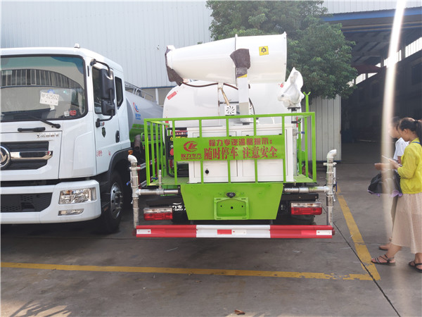 國六東風灑水車:東風底盤,軸距3360mm,安徽全柴490EGR發動機,7.00-16尼龍胎,帶暖風,氣剎(或油剎),國六東風灑水車價格最低。▲垂直吸程>7米,灑水寬度>14米,射程>28米。前沖(噴)):(能將路面泥巴、塵土、垃圾沖干凈);后灑(能均勻地將水灑在路面,灑水寬度>14米)、前側噴(花灑)(均勻地將路旁綠化帶澆灌)、后工作平臺,平臺上裝綠化灑水炮(炮有大雨、中雨、毛毛雨、霧狀可調節沖洗高大樹木),灑水泵,消防接頭,自流閥,過濾裝置、人性化爬梯及側防護欄,音樂喇叭。