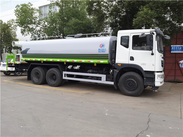 汕頭灑水車前安裝有360度可調(diào)整式直流噴嘴兩只(鴨形噴嘴或圓頭沖嘴),駕駛室控制開啟。沖洗寬度可達(dá)到14m以上,是環(huán)衛(wèi)灑水車重要的功能之一,可進(jìn)行路面沖洗、灑水、園林綠化、灌木叢的澆灌,還可用調(diào)節(jié)噴嘴螺紋的方法改變噴水器的噴灑方向和角度,將噴嘴調(diào)至一定角度對高大樹木進(jìn)行沖洗、降塵。