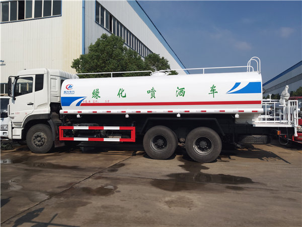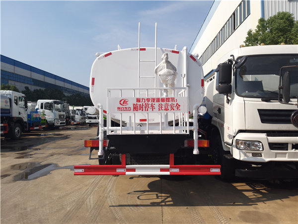 東風東風天龍豪華灑水車基本配置:隨車配備大功率專用灑水泵(標配隨州億豐灑水車,選配杭州威龍灑水泵),比同類灑水泵壓力大、吸程遠、使用壽命長,克服其他灑水泵易被雜物纏住、壓力小、吸水慢的缺點。整車帶前沖(噴)、后灑、側噴、罐體后部帶工作臺,平臺上安裝綠化高壓灑水炮。灑水炮可全方位旋轉,可連續調成直沖狀、開花狀、大雨、小雨、毛毛雨、半霧狀水流,以適合不同狀況下的需求。
