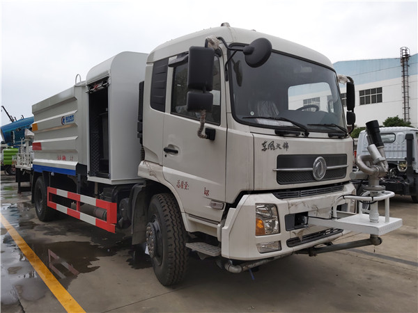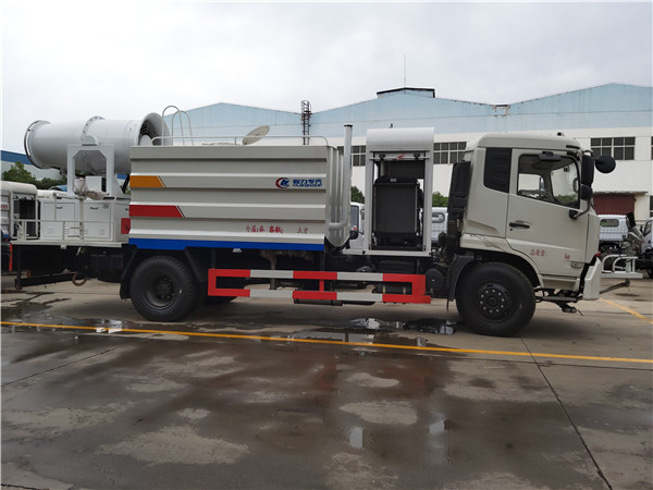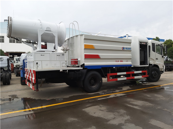 具有運水、排水,應急消防,灑水、壓塵、高、低位噴灑,農藥噴灑、護欄沖洗等功能。其配置為前沖、后灑和側噴,自吸式專用水泵,泵可抽水排水,帶消防接頭、自流閥、罐體后帶工作平臺,安裝綠化灑水炮,炮可旋轉可調節水量大小(噴射呈柱、霧、毛毛雨)。前沖(噴)、后灑、帶側噴(花灑)、帶后工作平臺、平臺上安裝綠化灑水高炮(炮噴射形狀可調節:直沖、大雨、中雨、毛毛雨、霧狀、可連續調節,360°旋轉),配消防接口,自流閥,濾網,帶自吸自排功能。配備全國評比質量第一的(日本技術)大功率專用灑水泵、取力器、球閥、濾網、輸水管道、抑塵裝置等部件組成。水泵、取力器、球閥、濾網均為國家標準產品,具有性能優良,工作可靠、效率高、流量大、維修方便等特點。