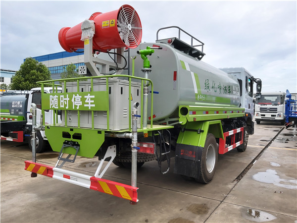 打開想要噴灑的球閥(前沖、后灑、側噴、花灑),然后起動發動機,將變速器掛入擋位,將取力器開關向后拉即掛檔取力,然后分離離合器,泵開始運轉,開始灑水,根據需要打開7、8、9、10,其中7為前沖開關,用于沖洗路面,8為灑水炮開關(可應急消防,可遠距離澆灌花木)。9為側噴開關,可澆灌路邊花臺花木。10為后灑開關,用于路面灑水。
