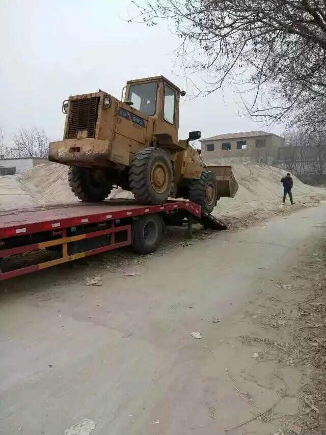 上圖為解放J6平板運輸車運輸車運輸裝載機毫無壓力