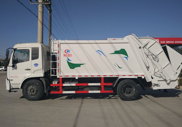 上裝配置:有效壓縮容積12立方,可裝10噸生活垃圾,壓縮倍率3-4倍,壓縮后生活垃圾密度從0.36變為0.9以上,帶污水收集箱,新款平板式箱體更美觀,尾部帶密封橡膠墊,可防污水滴漏二次污染。尾部可帶翻轉斗或掛桶裝置,可選裝PLC一鍵操控系統,駕駛室和尾部雙操控機構。