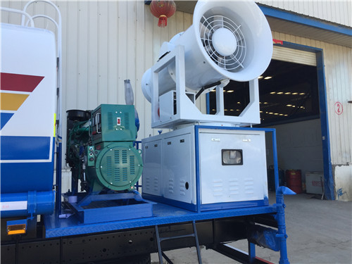 東風御虎多功能霧炮抑塵車的噴霧機水平射程有25米,40米,50米,60米,70米,80米,100米,120米,150米。 每種水平射程所對應的發電機功率不同。因為多功能噴霧抑塵車柱塞水泵功率也不一樣,流量也不同,需要不同噸位車型霧炮射程大小可定做具體配置歡迎致電:152728555926