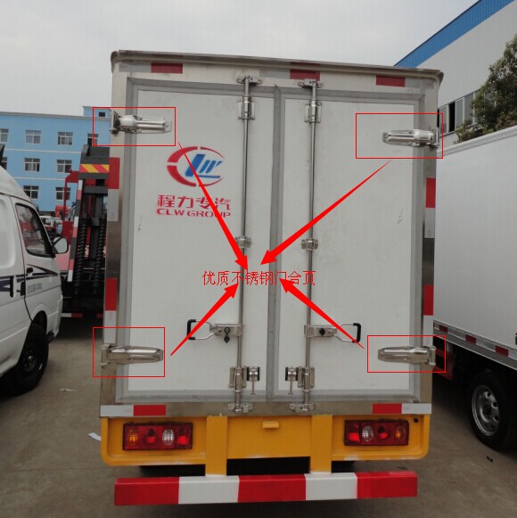 廂板材質:內外壁板選用國內優質的機制2.2mm玻璃鋼;中間保溫材料選用厚進口聚氨酯;廂體厚度80---100mm 門厚度80-100mm;(肉鉤車廂預埋加強骨架);底板上面整體玻璃鋼,下面3mm平鋼板,中間進口聚氨酯;