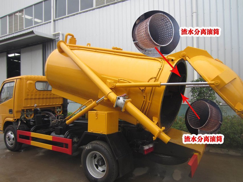 分離式吸污車罐體可采用:碳鋼、不銹鋼。 吸污車專用部分由取力器、傳動(dòng)軸、專用真空吸污泵、高壓成型糞罐、水氣分離器、油氣分離、多路換向閥、 吊桿、吸污槍,管網(wǎng)系統(tǒng)組成,并裝有真空壓力表、視污窗(管),洗手裝置。
